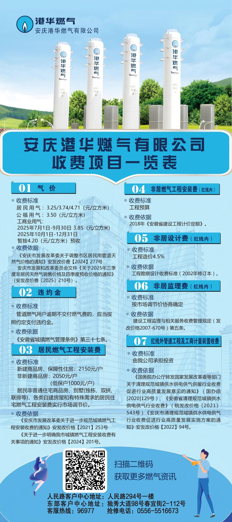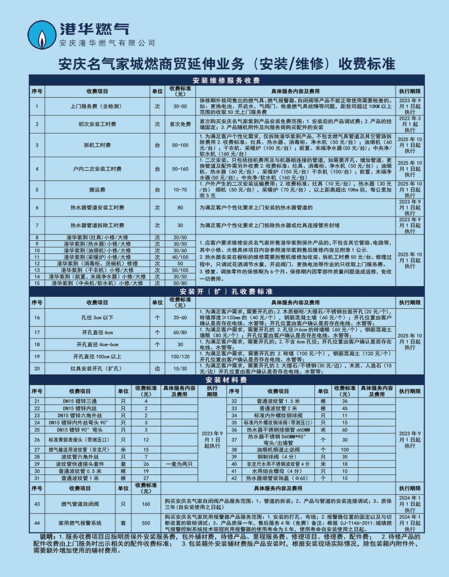 安慶港華燃?xì)庥邢薰臼召M(fèi)項(xiàng)目一覽表(2025)