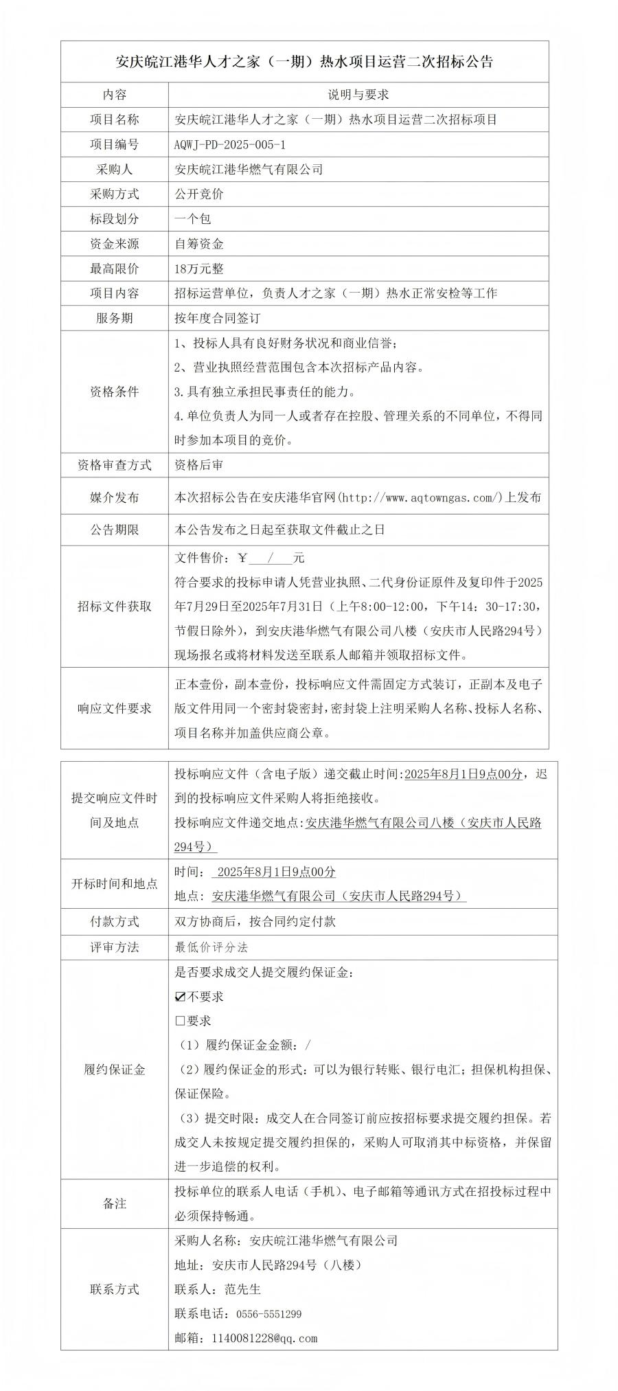 安慶皖江港華人才之家(一期)熱水項目運營二次招標公告