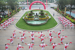 2013年9月28日,第九屆職工運動會在興業(yè)財富廣場舉行,圖為社區(qū)中老年文體活動俱樂部精彩的開幕式表演。 |